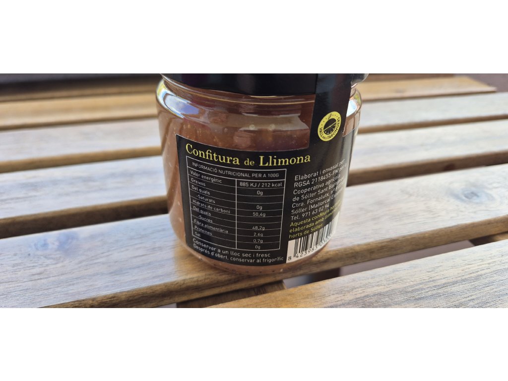 Zemědělské družstvo Sóller představuje svou citronovou marmeládu, zjemněnou pomerančovou šťávou a citronovou kůrou. Produkt vyrobený z čerstvých, přírodních citronů ze sadů Sóller. Můžete ochutnat plně zralé citrony, jejichž kyselost je výrazně snížena přidáním pomerančové šťávy.